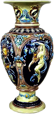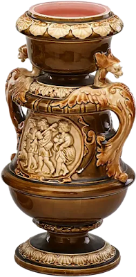 The decorated ornamental vases from the Schütz factory represent some of the most artistically refined ceramic pieces. Drawing from a rich blend of historical styles, these vases often feature elaborate reliefs, mythological figures, floral motifs, and intricate glazing techniques. They reflect the influence of academic art schools in Vienna and Zagreb, with many designs originating in collaboration with Viennese artists and professors. Each vase not only showcases skilled craftsmanship but also serves as a testament to the aesthetic preferences of late 19th- and early 20th-century Central Europe.