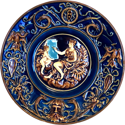 The decorative plates produced by Schütz were among the most refined examples of their ceramic artistry. Often inspired by classical antiquity, these plates featured mythological figures, ornamental motifs, and elegant compositions. Designs ranged from monochrome to multicolored versions, with certain central themes repeated across different styles and palettes. While visually rich, the plates were intended primarily for decorative purposes, emphasizing beauty and craftsmanship over strict symbolic meaning.
