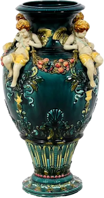 The decorated ornamental vases from the Schütz factory represent some of the most artistically refined ceramic pieces. Drawing from a rich blend of historical styles, these vases often feature elaborate reliefs, mythological figures, floral motifs, and intricate glazing techniques. They reflect the influence of academic art schools in Vienna and Zagreb, with many designs originating in collaboration with Viennese artists and professors. Each vase not only showcases skilled craftsmanship but also serves as a testament to the aesthetic preferences of late 19th- and early 20th-century Central Europe.