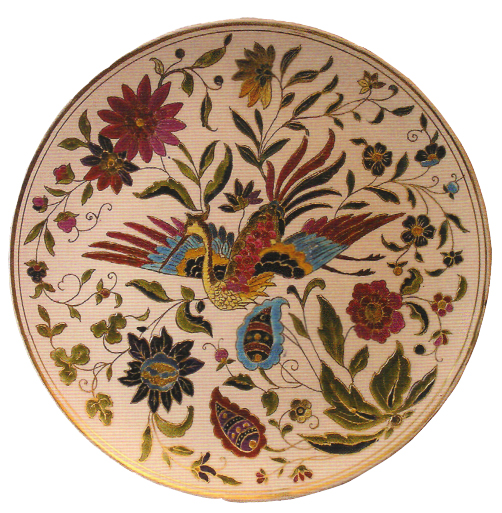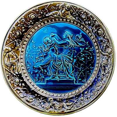 The decorative plates produced by Schütz were among the most refined examples of their ceramic artistry. Often inspired by classical antiquity, these plates featured mythological figures, ornamental motifs, and elegant compositions. Designs ranged from monochrome to multicolored versions, with certain central themes repeated across different styles and palettes. While visually rich, the plates were intended primarily for decorative purposes, emphasizing beauty and craftsmanship over strict symbolic meaning.